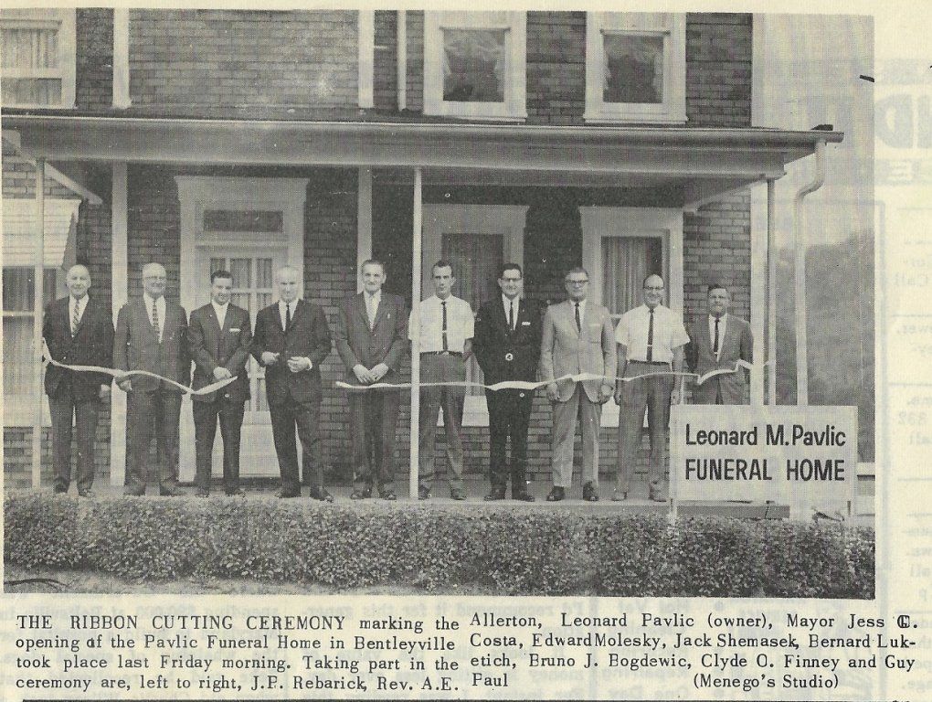 1963- Opening of Leonard M. Pavlic Funeral Home in Bentleyville.